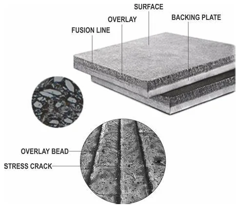 Chrome Carbide Overlay Plates ແນະນໍາອຸປະກອນທີ່ທົນທານຕໍ່ການສວມໃສ່ໃຫ້ແກ່ລູກຄ້າຂອງພວກເຮົາທັງຫມົດໃນວິທີການທີ່ມີປະສິດທິພາບແລະອາຍຸການນຸ່ງເສື້ອຍາວ! ໂທຫາຂ້ອຍທັນທີຖ້າທ່ານຕ້ອງການຄວາມຊ່ວຍເຫຼືອກ່ຽວກັບຄຸນລັກສະນະຂອງແຜ່ນຊ້ອນ chromium carbide ຫຼືຕ້ອງການສະຫມັກຂໍຕົວຢ່າງ!