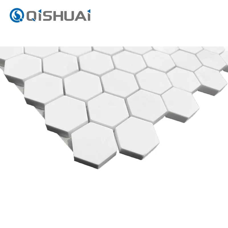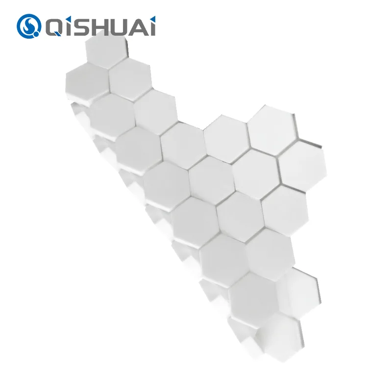 Shandong Qishuai Wear-Resistant Equipment Co., Ltd. ຂອງ Hex Alumina Ceramic Mosaic ຄຸນນະພາບສູງຂອງບໍລິສັດ, ດັ່ງທີ່ສະແດງ, ມີການອອກແບບຮູບສີ່ຫລ່ຽມທີ່ໂດດເດັ່ນເຊິ່ງເຮັດໃຫ້ພວກມັນແຕກຕ່າງຈາກກະເບື້ອງສີ່ຫລ່ຽມຫຼືວົງມົນທົ່ວໄປ. ກະເບື້ອງເຊລາມິກອະລູມີນຽມຫົກຫຼ່ຽມແຕ່ລະອັນມີຂອບລຽບ, ໄຫຼອອກດ້ວຍລາຍລະອຽດທີ່ງົດງາມເຫັນໄດ້ຊັດເຈນ.