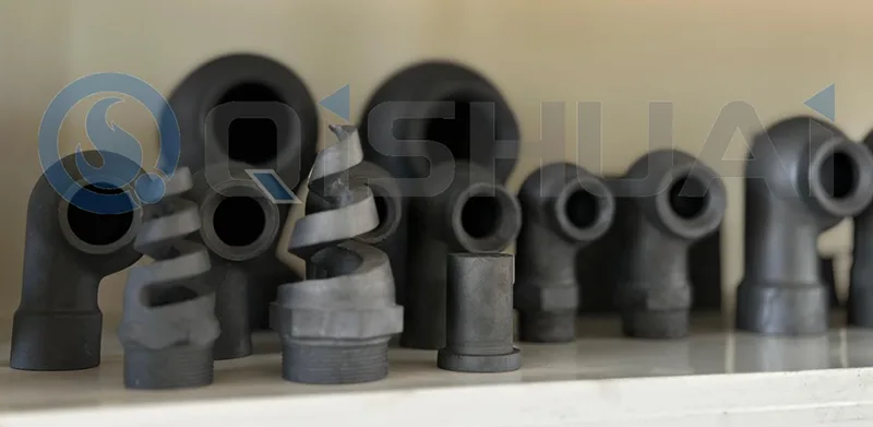 Nozzles Silicon Carbide ແມ່ນພົບເຫັນເລື້ອຍໆໃນການກໍາຈັດຂີ້ຝຸ່ນ, ການເຄືອບສີດ, desulphurisation ແລະລະບົບການເຜົາໃຫມ້ເປັນສ່ວນຕ້ານການສວມໃສ່. ນອກ ເໜືອ ໄປຈາກຫົວສີດທີ່ງ່າຍດາຍທີ່ມີຫຼັກຊັບ, Qishuai ຍັງສາມາດປະຕິບັດຄວາມຕ້ອງການຂອງລູກຄ້າໂດຍການອອກແບບຫົວສີດໃຫມ່ທີ່ມີມຸມສີດ, ອັດຕາການໄຫຼແລະການດັດແປງການຕໍ່ຕ້ານ corrosion ຖ້າຈໍາເປັນ. SiC ຍືດເວລາອຸປະກອນໃຫ້ດົນຂຶ້ນ ແລະຫຼຸດຄ່າໃຊ້ຈ່າຍຕະຫຼອດຊີວິດ.